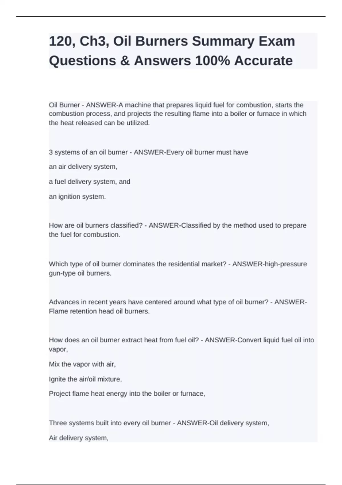 How are oil burners classified? - ANSWER-Classified by the method used to prepare