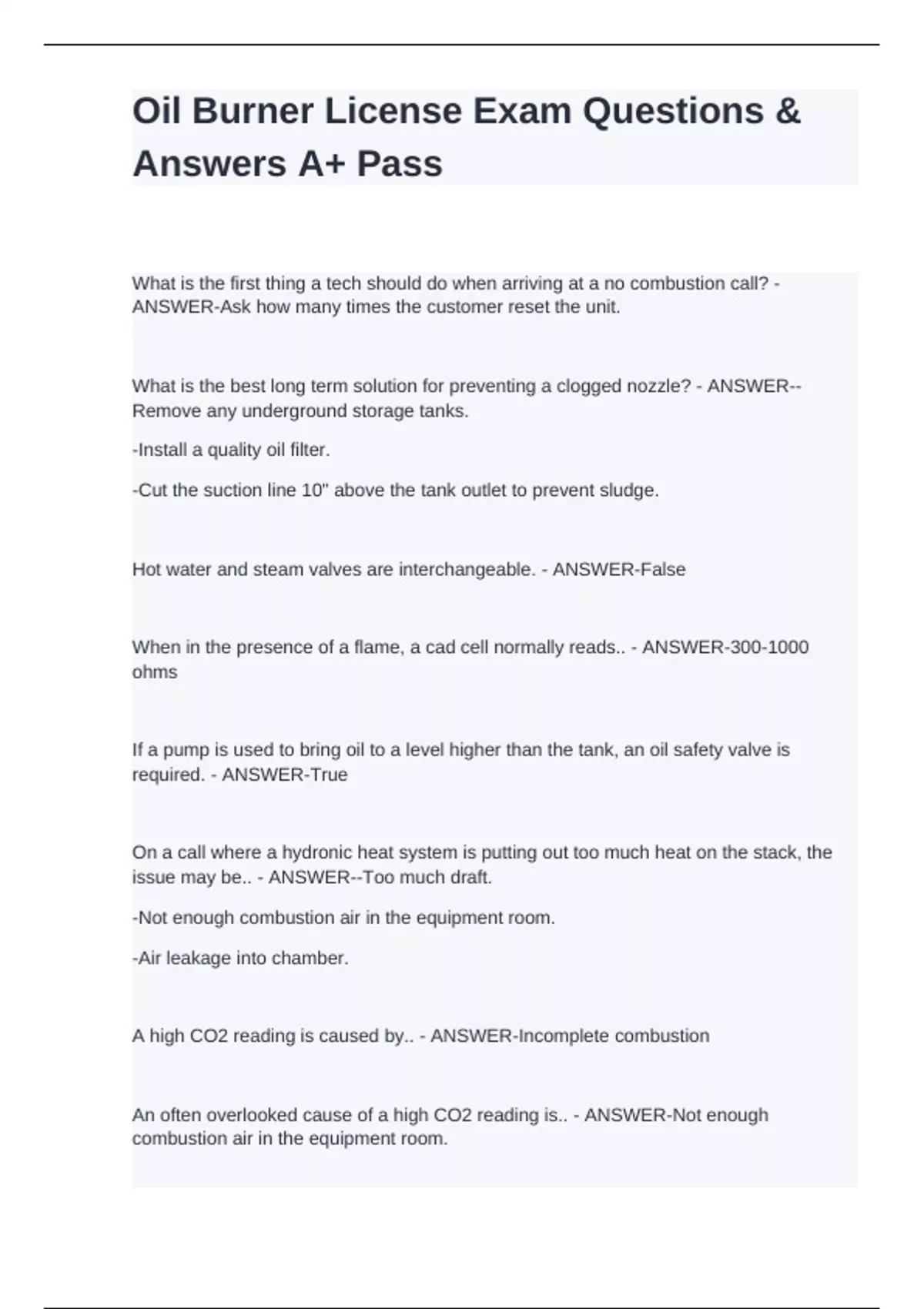 Oil Burner License Exam Questions & Answers A+ Pass