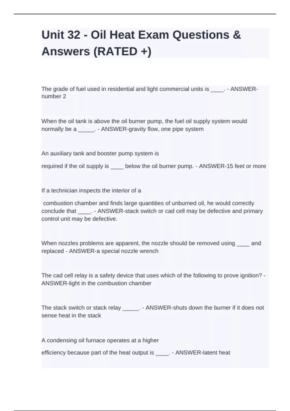 Unit 32 - Oil Heat Exam Questions & Answers (RATED +)