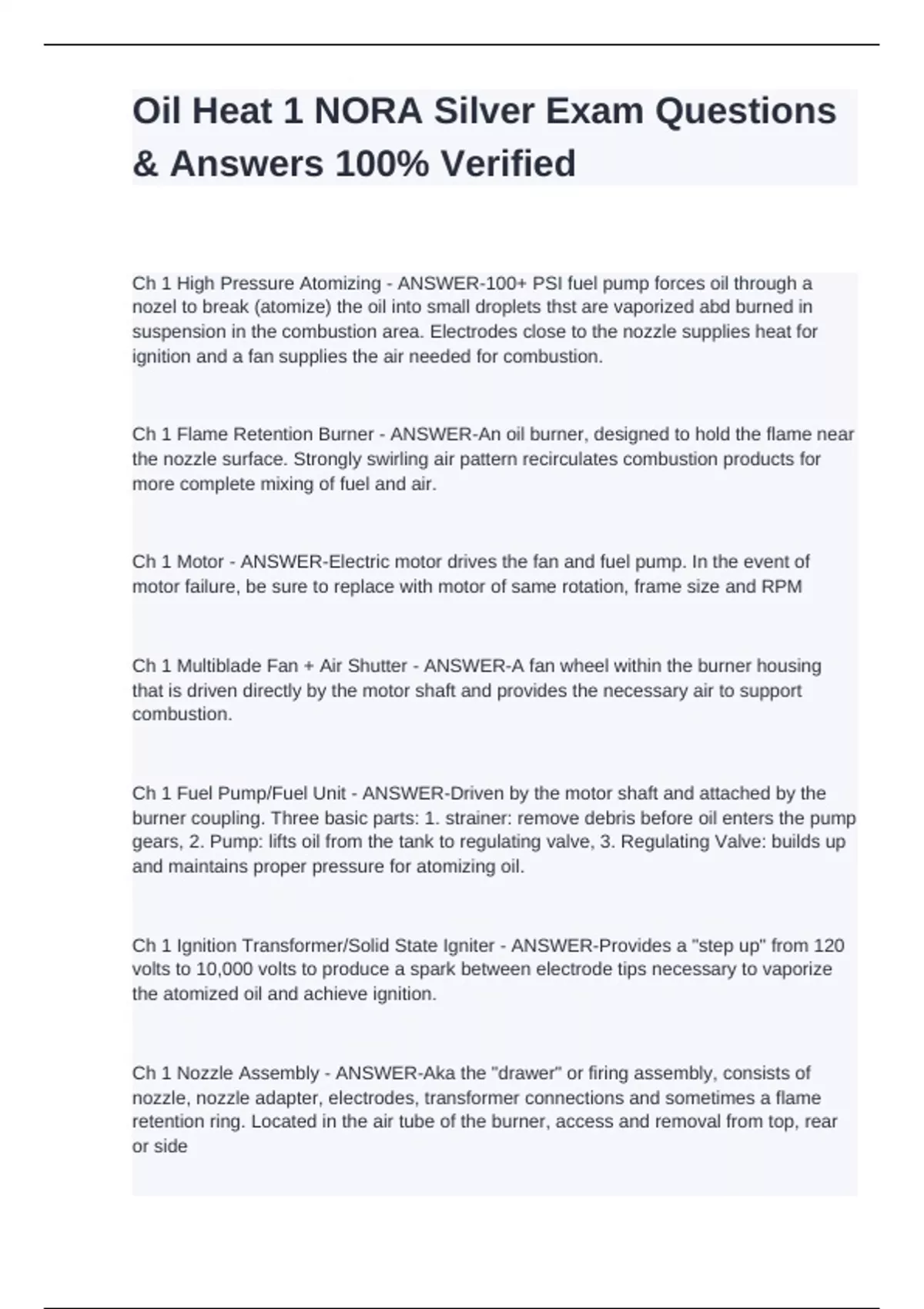 Oil Heat 1 NORA Silver Exam Questions & Answers 100% Verified