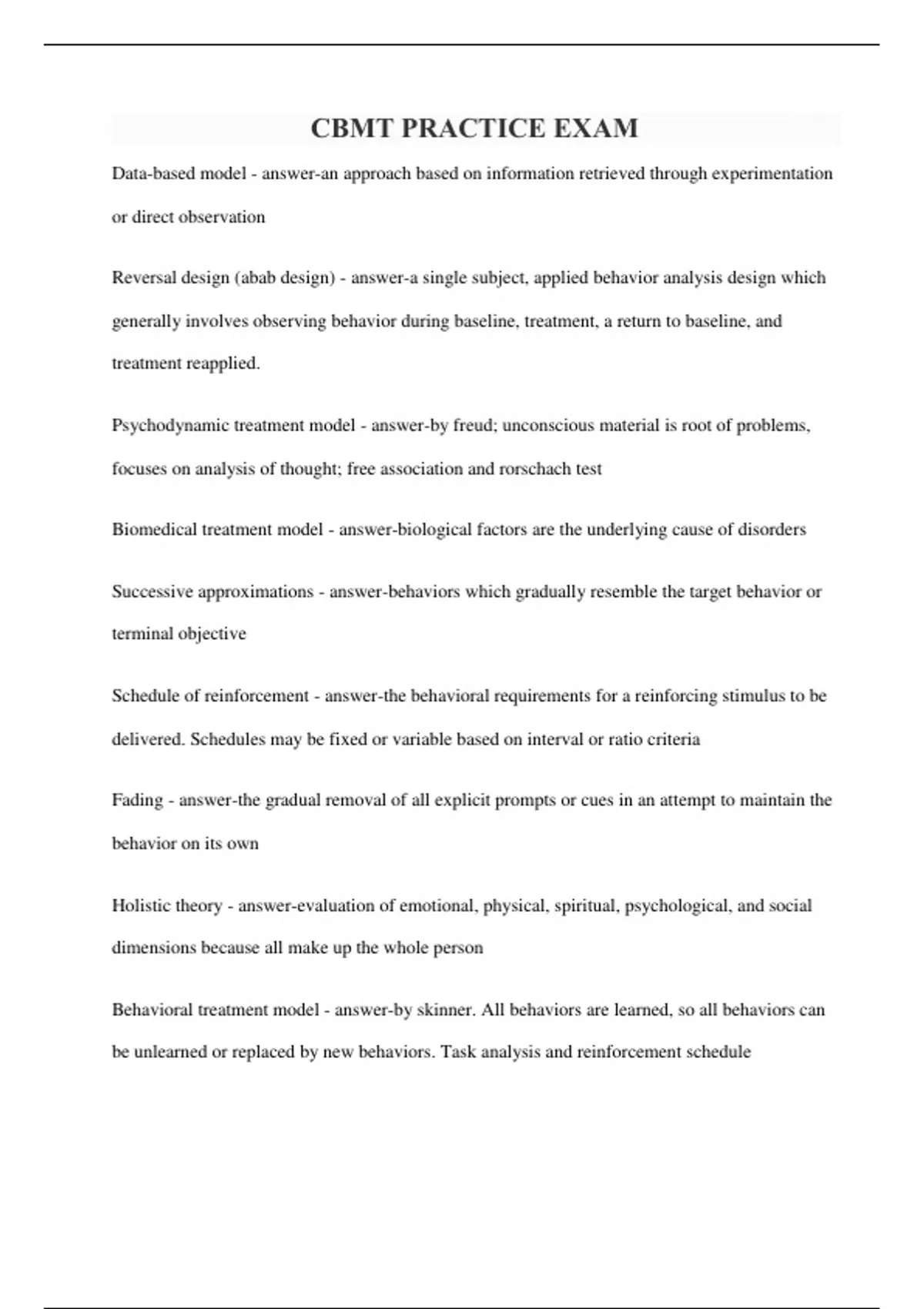 Exam of 20 pages for the course CBMT at CBMT (CBMT PRACTICE EXAM)