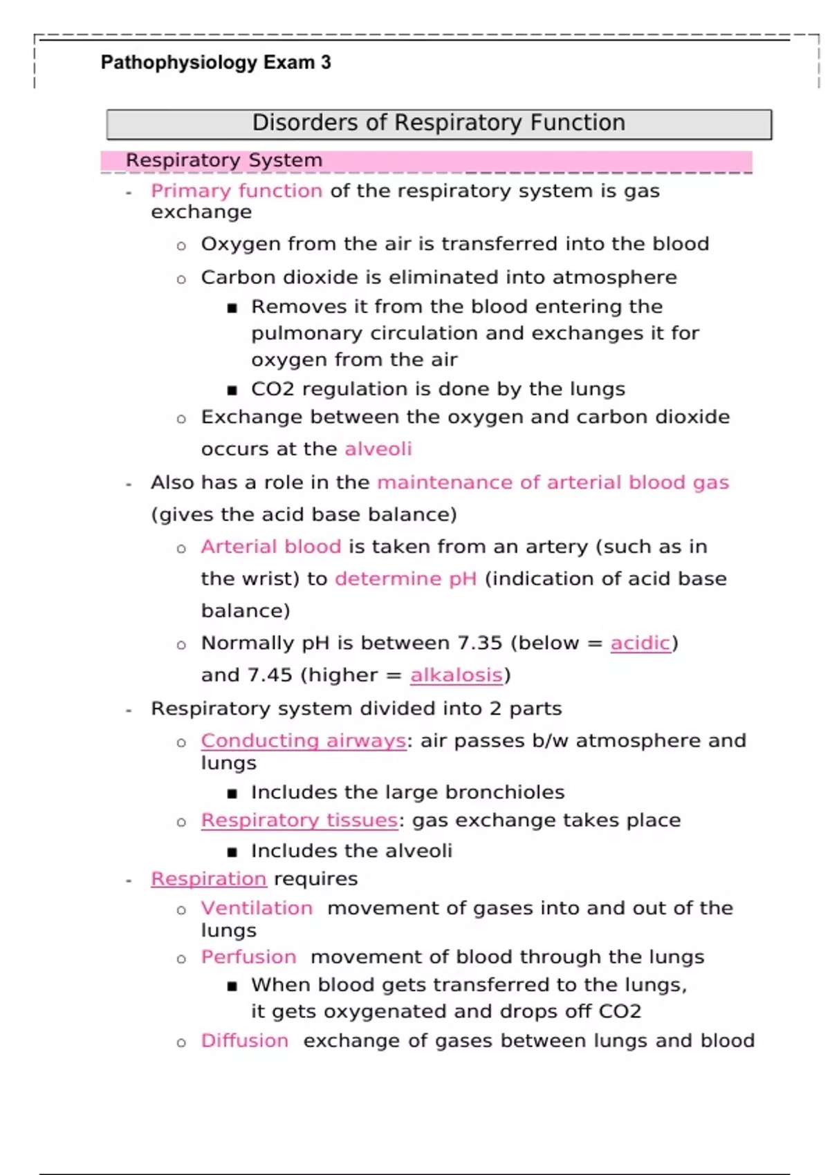 Pathophysiology Exam 3 Study Guide Notes
