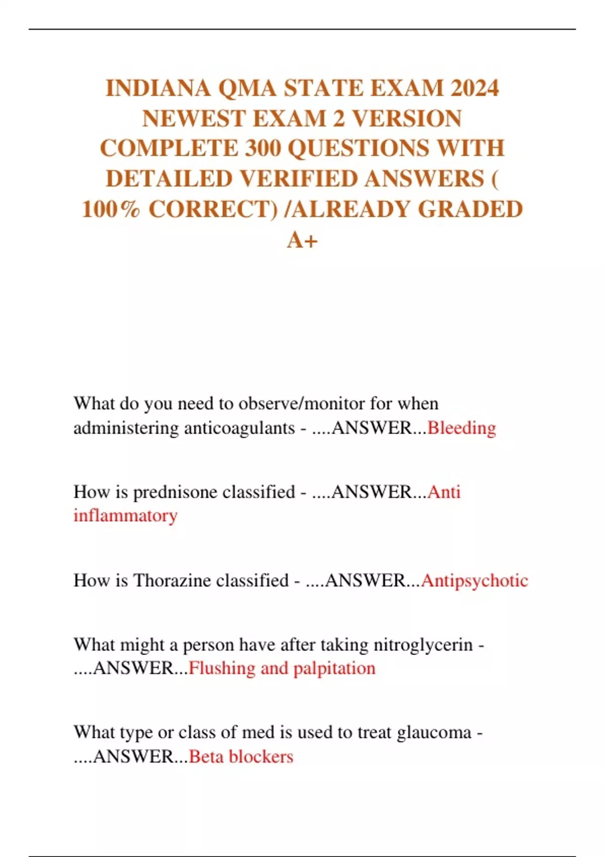 INDIANA QMA STATE EXAM 2024 NEWEST EXAM 2 VERSION COMPLETE 300 QUESTIONS WITH DETAILED VERIFIED ANSWERS ( 100% CORRECT) /ALREADY GRADED A+