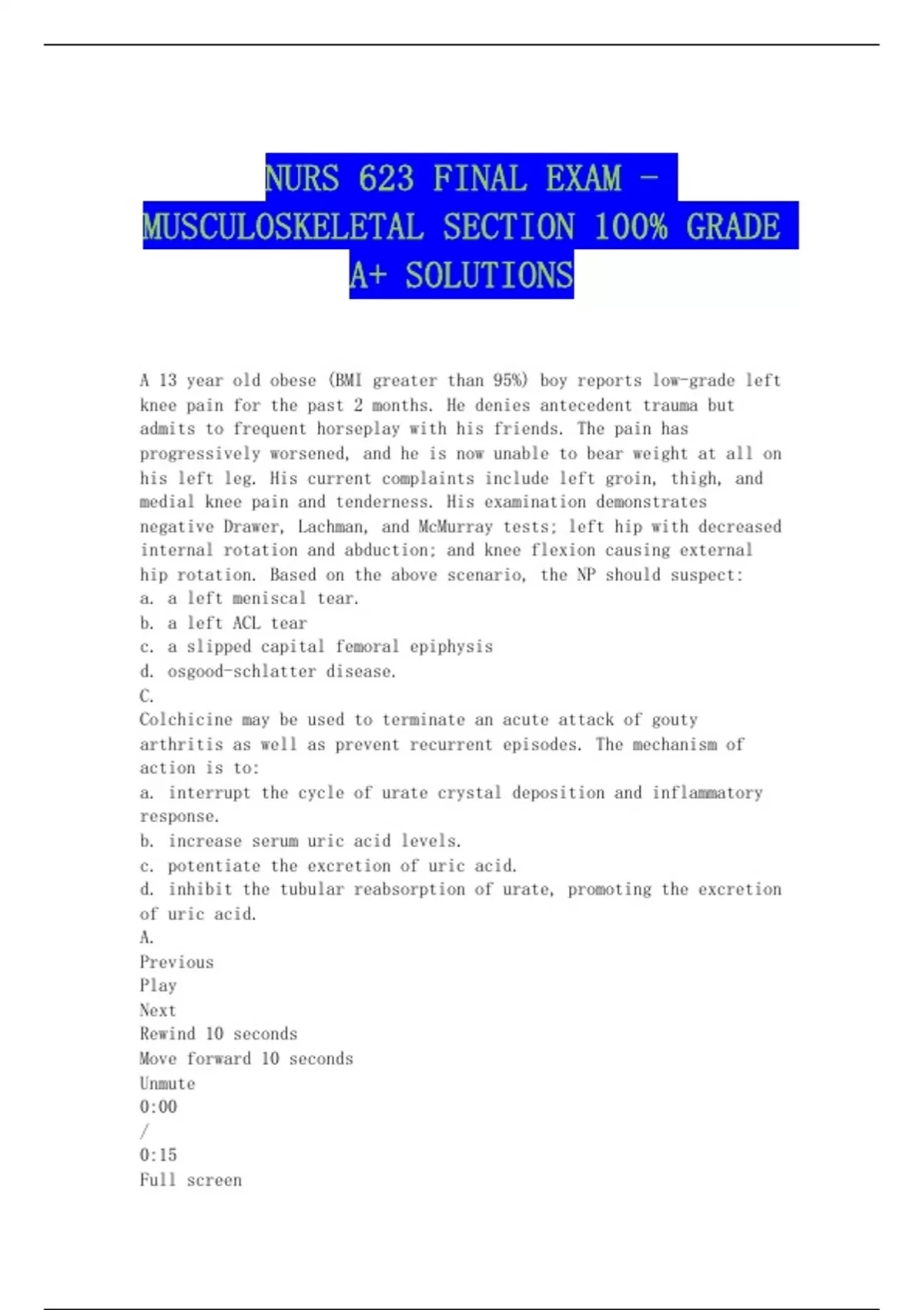 A 13 year old obese (BMI greater than 95%) boy reports low-grade left