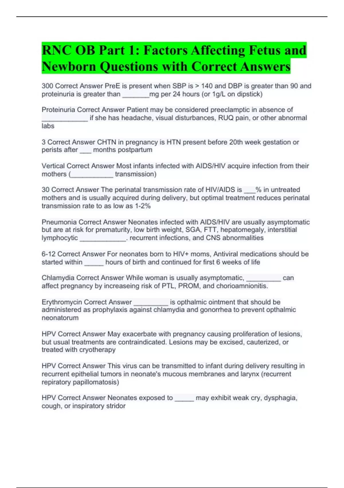 RNC OB Part 1: Factors Affecting Fetus and Newborn Questions with Correct Answers