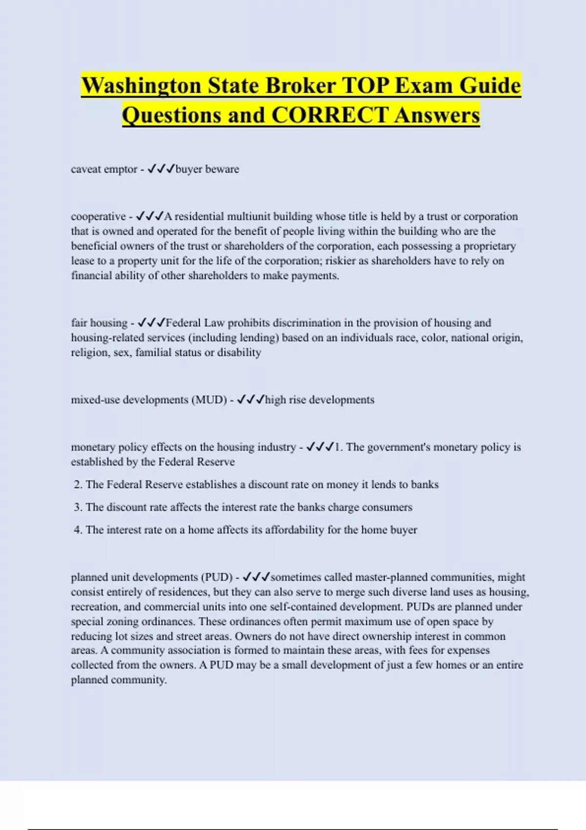 Washington State Broker TOP Exam Guide Questions and CORRECT Answers