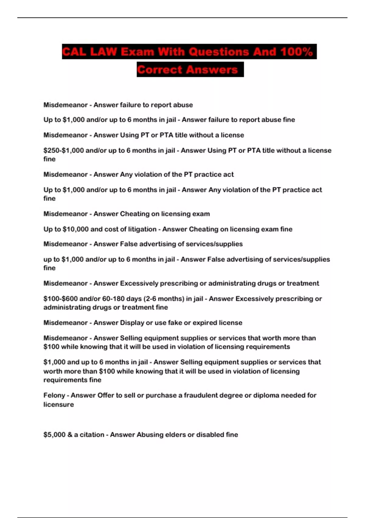 CAL LAW Exam With Questions And 100% Correct Answers ...
