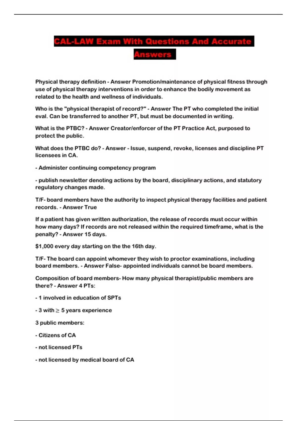 CAL-LAW Exam With Questions And Accurate Answers ...