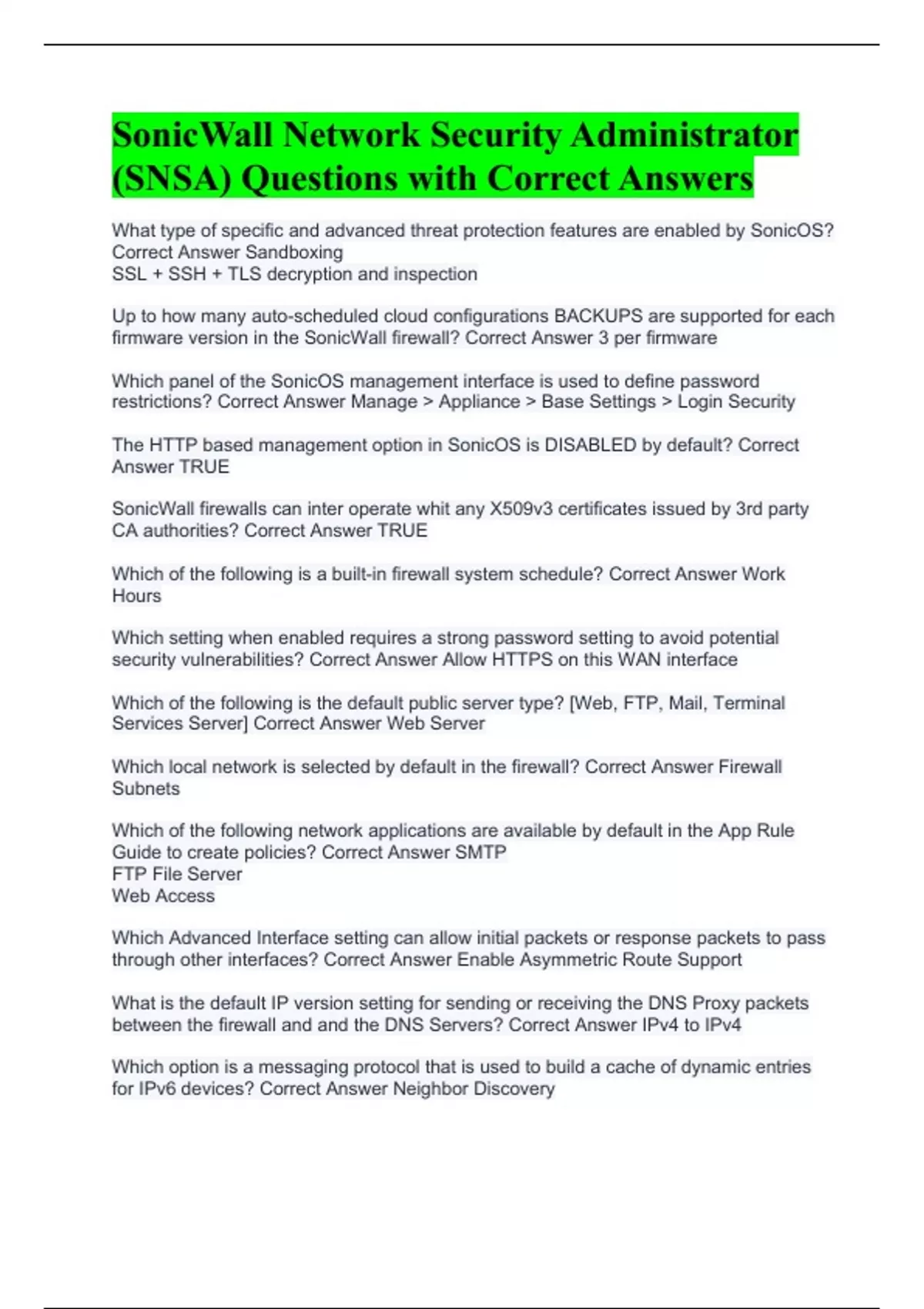 SonicWall Network Security Administrator (SNSA) Questions with Correct Answers