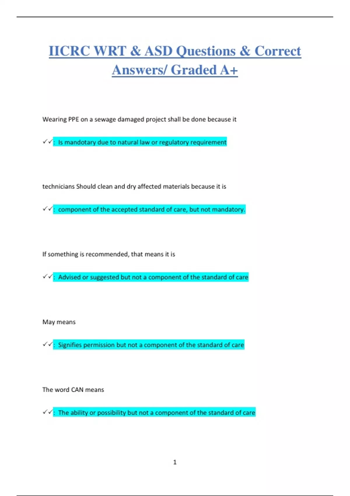 IICRC WRT & ASD Questions & Correct Answers/ Graded A+