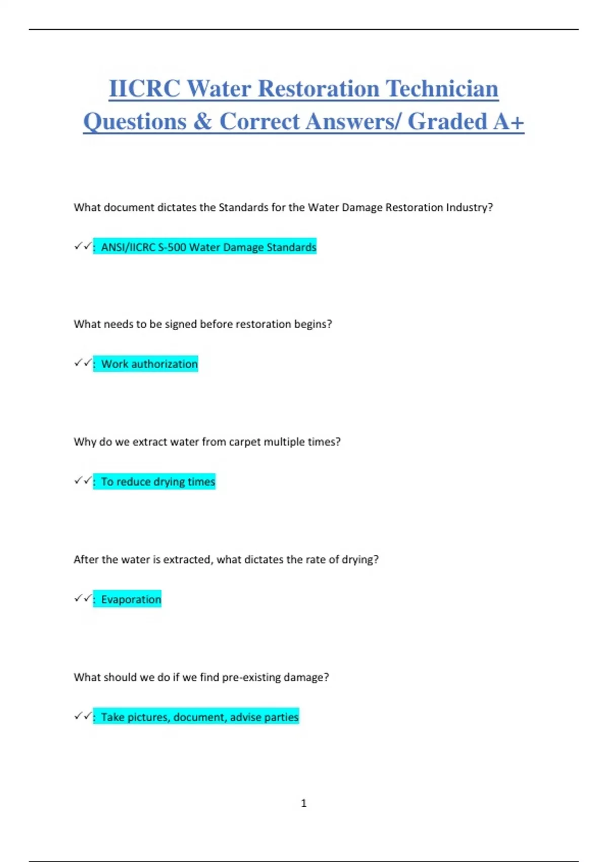 IICRC Water Restoration Technician Questions & Correct Answers/ Graded A+