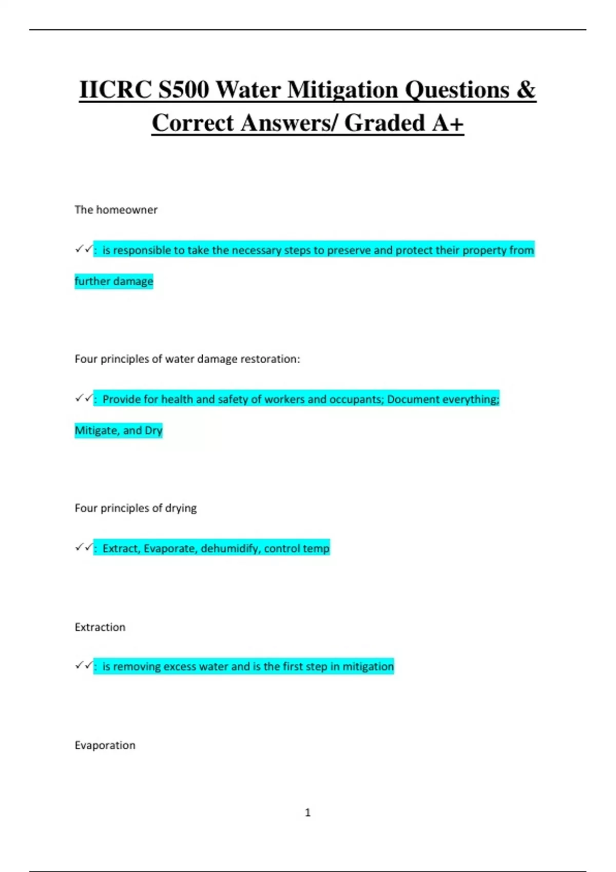 IICRC S500 Water Mitigation Questions & Correct Answers/ Graded A+