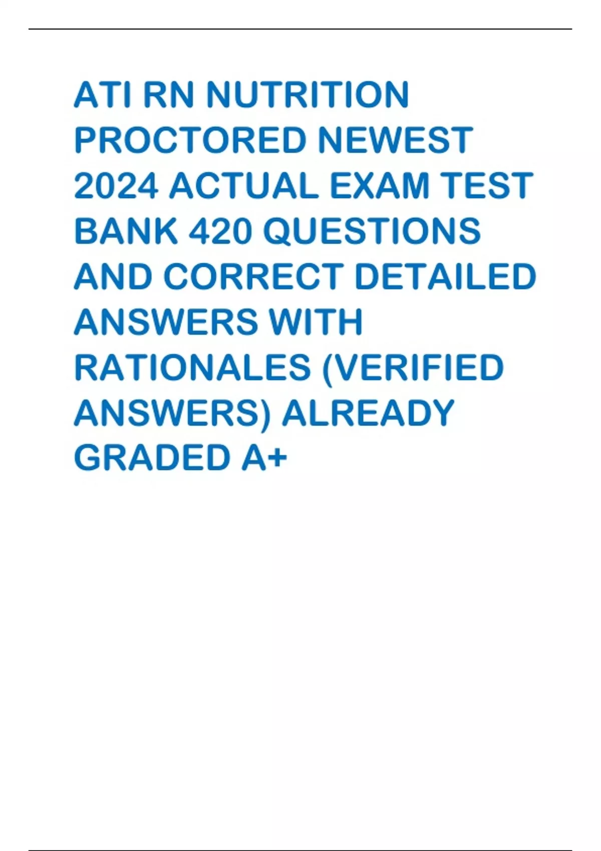 ATI RN NUTRITION PROCTORED NEWEST 2024 ACTUAL EXAM TEST BANK 420 QUESTIONS AND CORRECT DETAILED ANSWERS WITH RATIONALES (VERIFIED ANSWERS) ALREADY GRADED A+