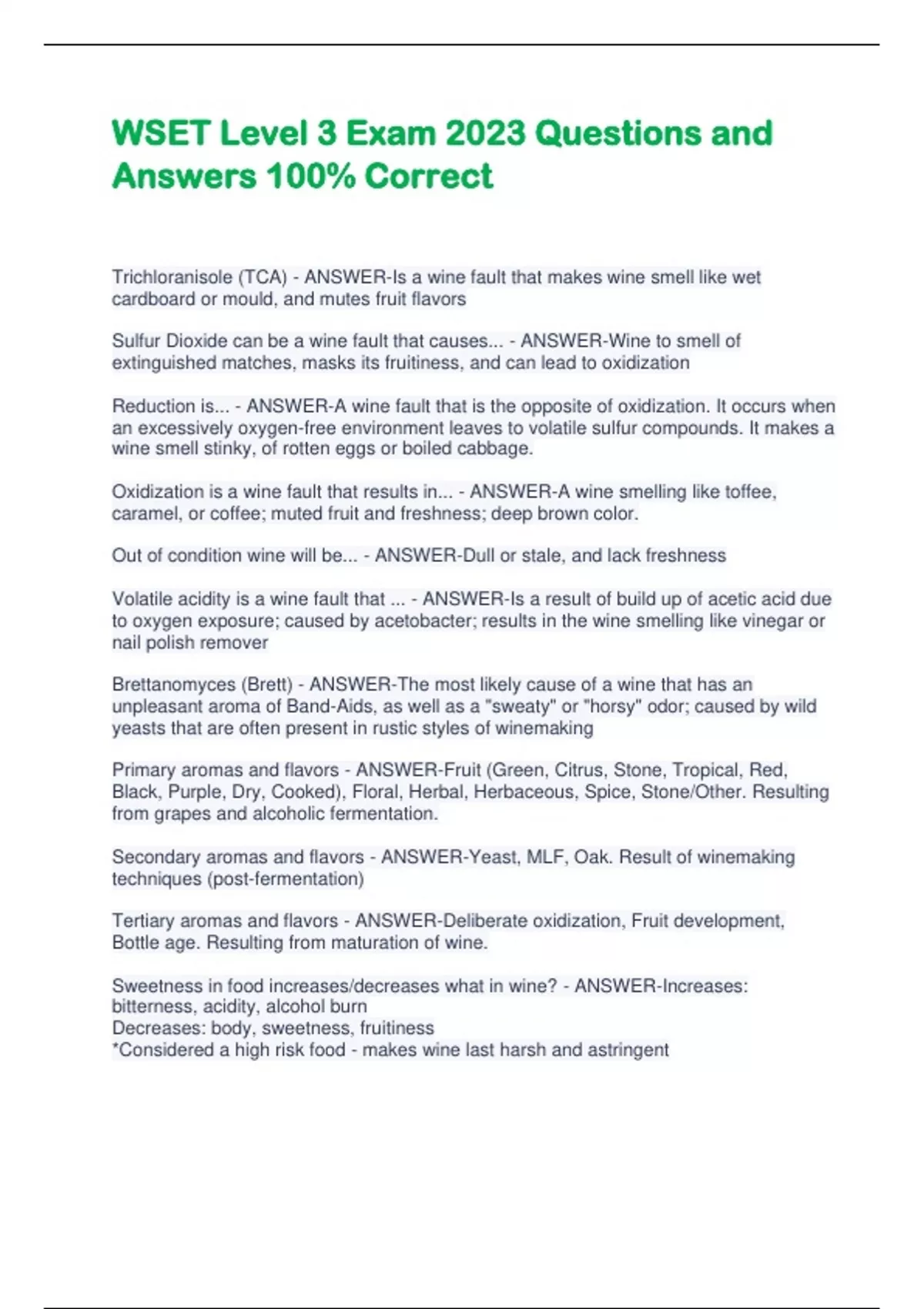 - WSET Level 3 Exa 2023 Questios and Ansers 100%