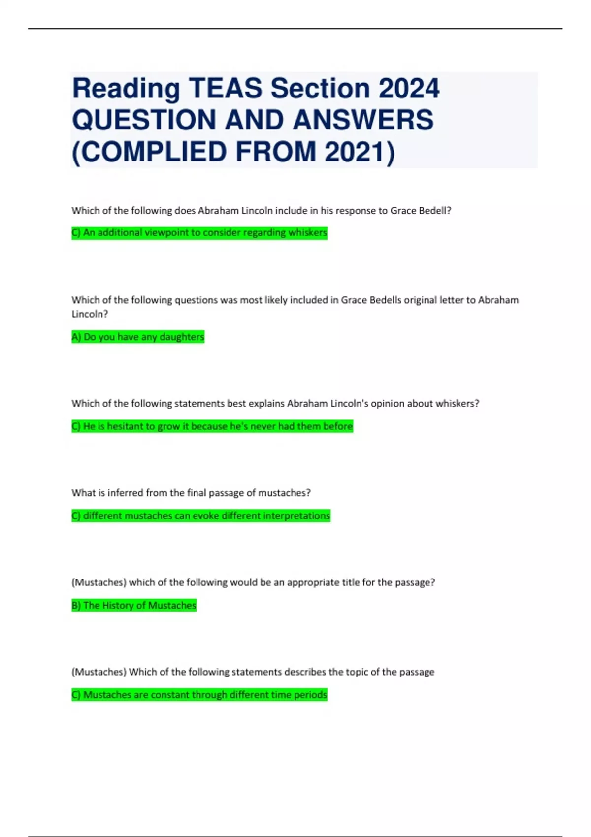 Reading TEAS Section 2024 QUESTION AND ANSWERS (COMPLIED FROM 2021)