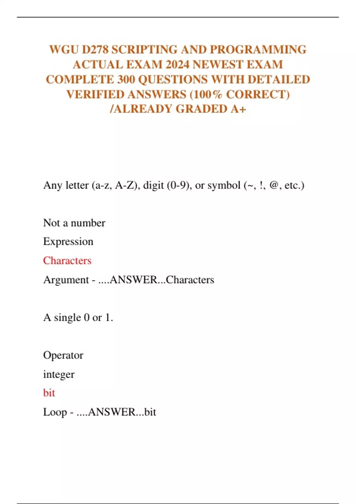 WGU D278 SCRIPTING AND PROGRAMMING ACTUAL EXAM 2024 NEWEST EXAM COMPLETE 300 QUESTIONS WITH DETAILED VERIFIED ANSWERS (100% CORRECT) /ALREADY GRADED A+