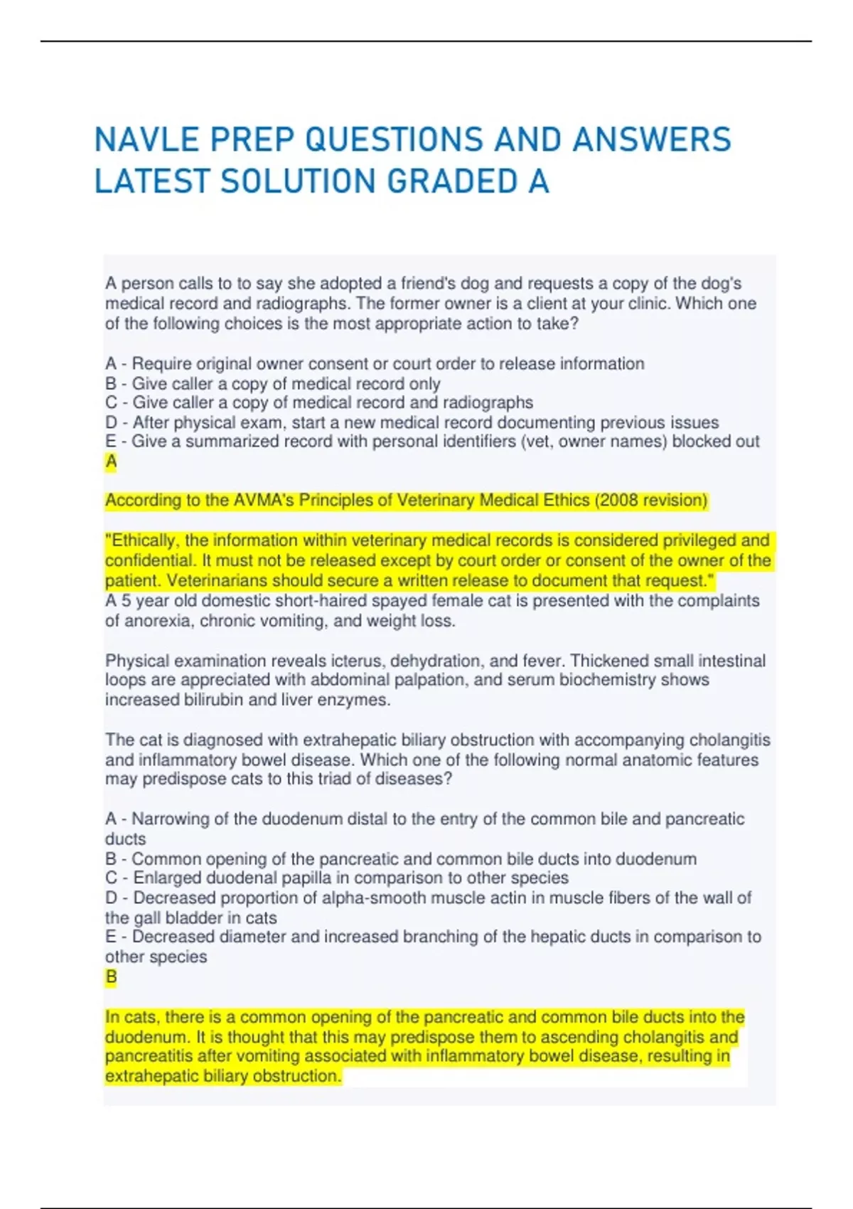 NAVLE PREP QUESTIONS AND ANSWERS LATEST SOLUTION GRADED A
