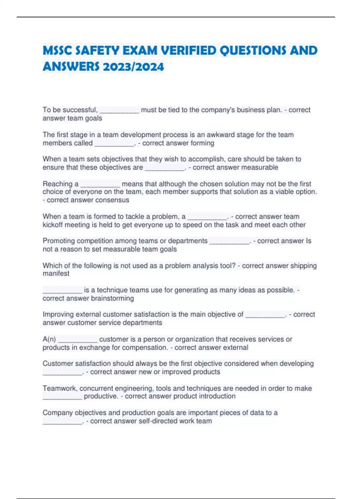 - MSSC SAFETY EAMVERIIED QUSTIONS AND NSWERS 2