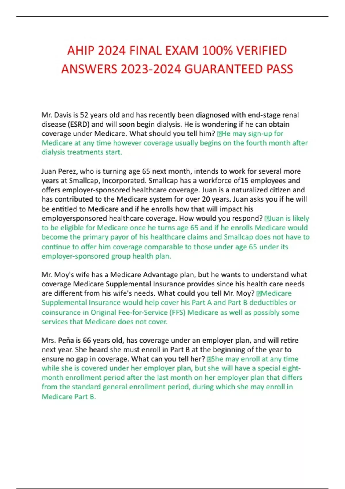 AHIP 2024 FINAL EXAM 100 VERIFIED ANSWERS GUARANTEED PASS