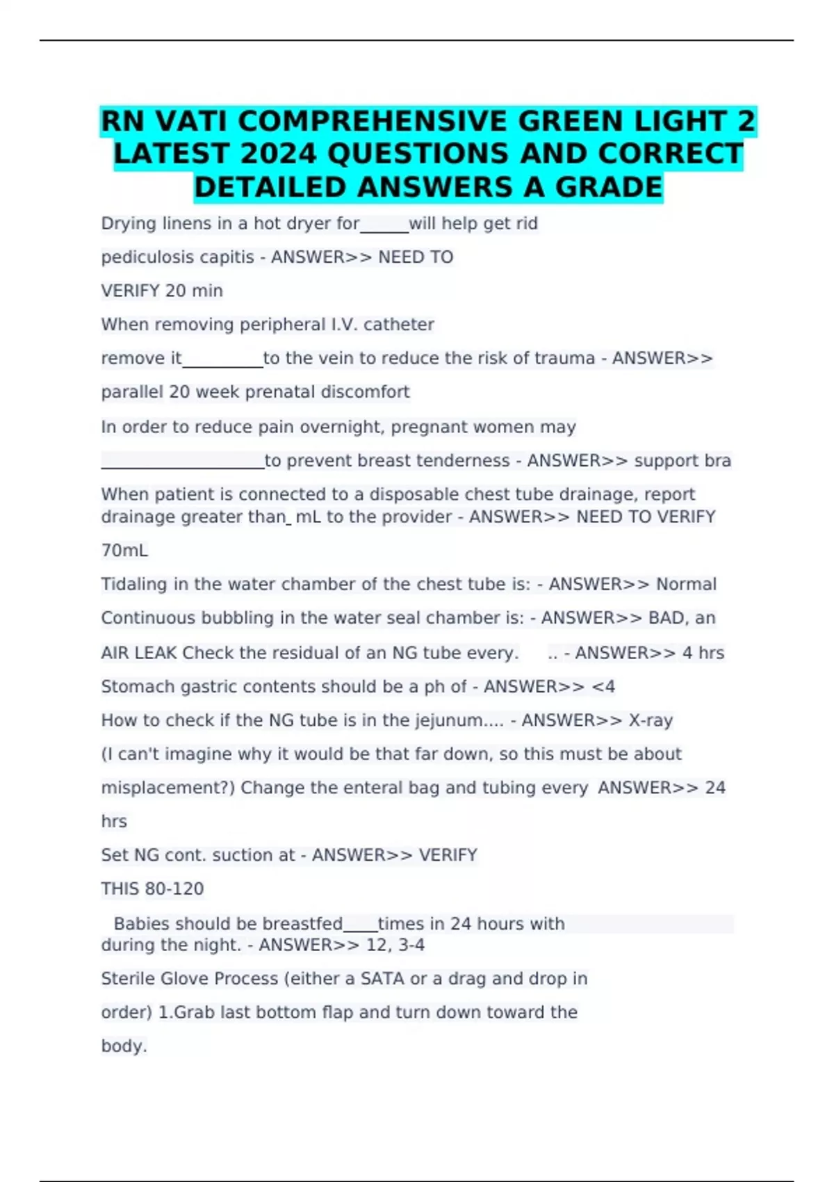 RN VATI COMPREHENSIVE GREEN LIGHT 2 LATEST 2024 QUESTIONS AND CORRECT DETAILED ANSWERS A GRADE