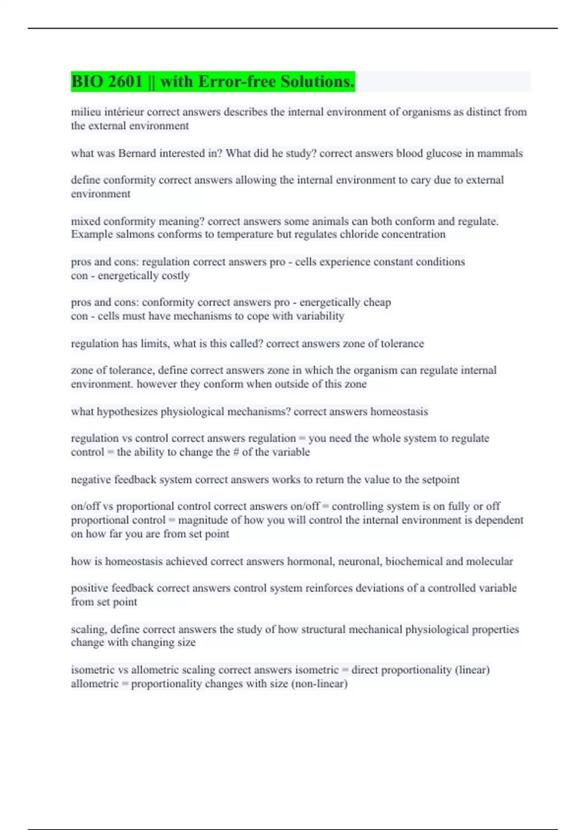 BIO 2601 || with Error-free Solutions.