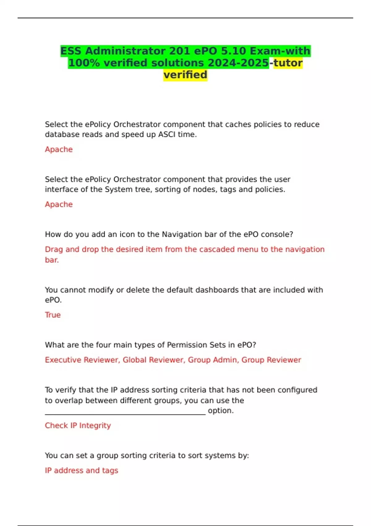 ESS Administrator 201 ePO 5.10 Exam-with 100% verified solutions -tutor