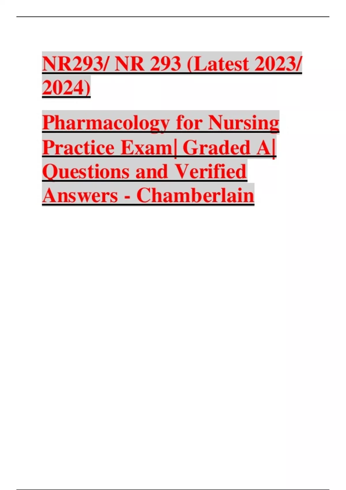 NR293/ NR 293 (Latest 2023/ 2024) Pharmacology for Nursing Practice Exam| Graded A| Questions and Verified Answers - Chamberlain