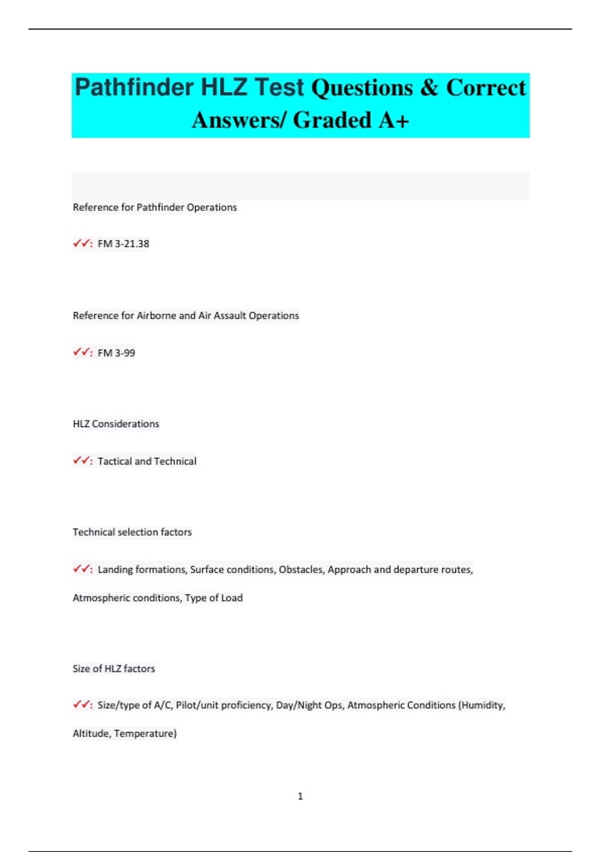 Pathfinder HLZ Test Questions & Correct Answers/ Graded A+
