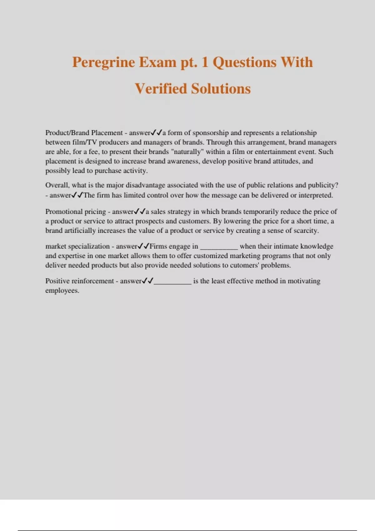 Peregrine Exam pt. 1 Questions With Verified Solutions