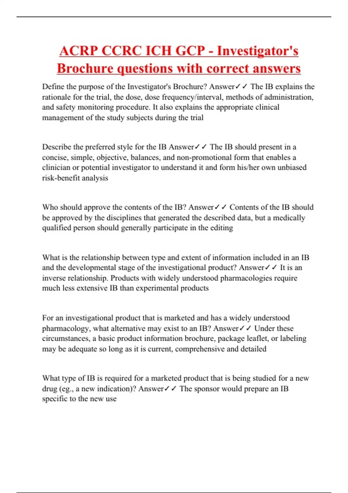 ACRP CCRC ICH GCP - Investigator's Brochure questions with correct answers