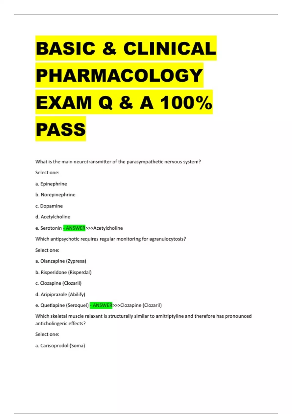BASIC & CLINICAL PHARMACOLOGY EXAM Q & A 100% PASSBASIC & CLINICAL PHARMACOLOGY EXAM Q & A 100% PASSBASIC & CLINICAL PHARMACOLOGY EXAM Q & A 100% PASSBASIC & CLINICAL PHARMACOLOGY EXAM Q & A 100% PASSBASIC & CLINICAL PHARMACOLOGY EXAM Q & A 100% PASS