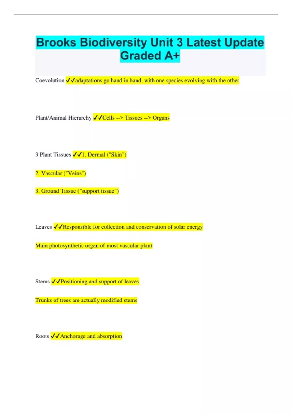 Brooks Biodiversity Unit 3 Latest Update Graded A+