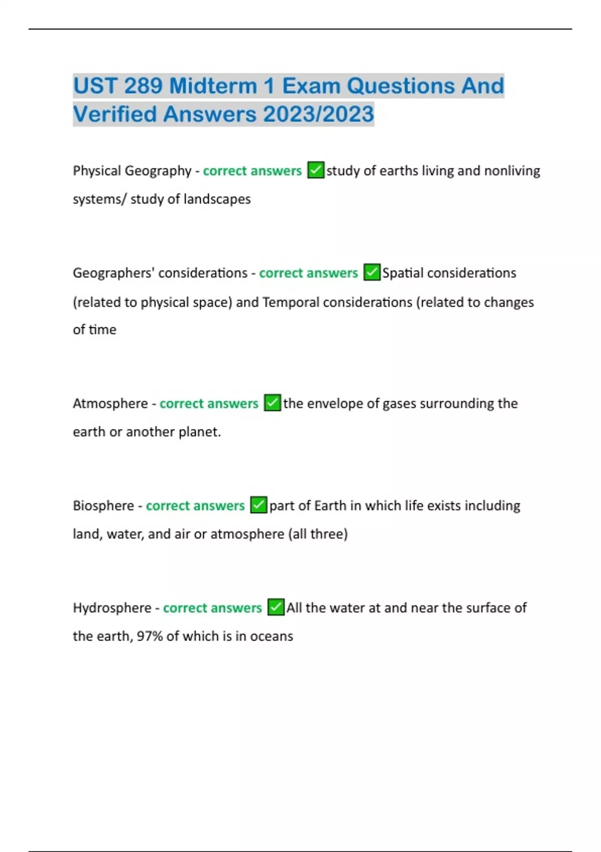 UST 289 Midterm 1 Exam Questions And Verified Answers 2023/2023