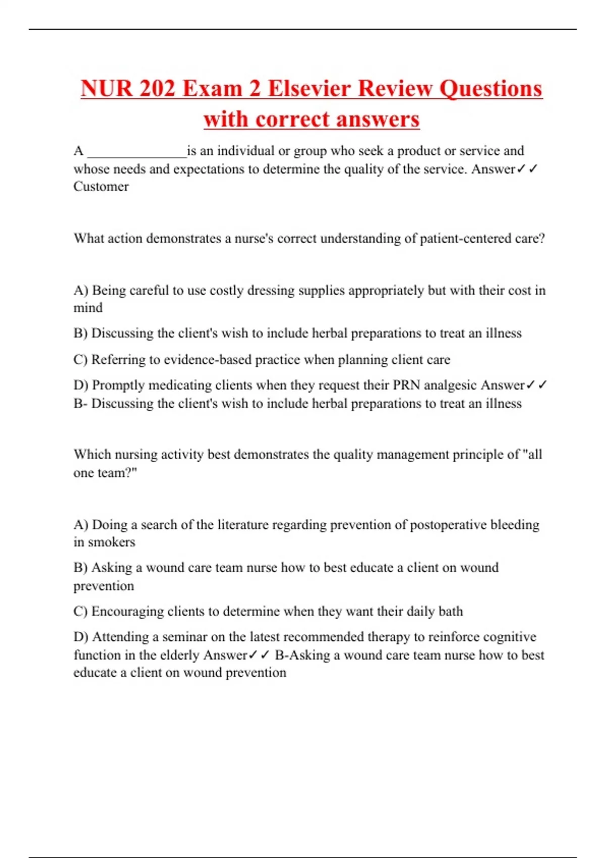 NUR 202 Exam 2 Elsevier Review Questions with correct answers