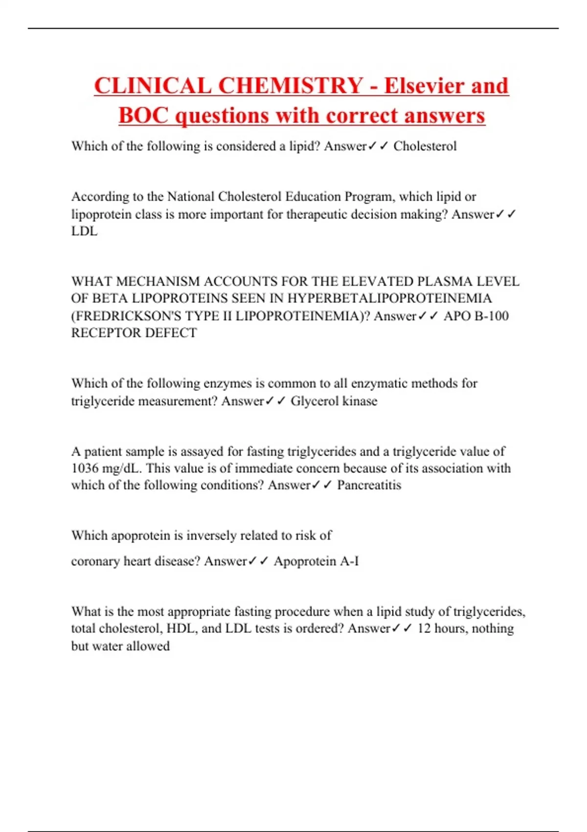 CLINICAL CHEMISTRY - Elsevier and BOC questions with correct answers