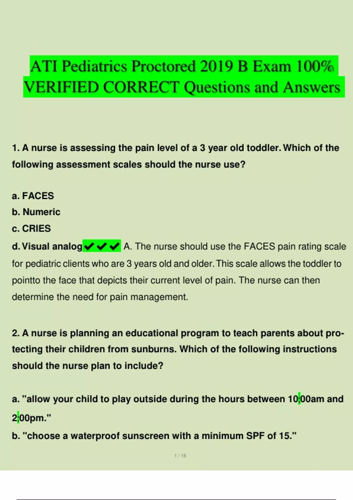 ATI Pediatrics Proctored 2019 B Exam 100% VERIFIED CORRECT Questions and Answers