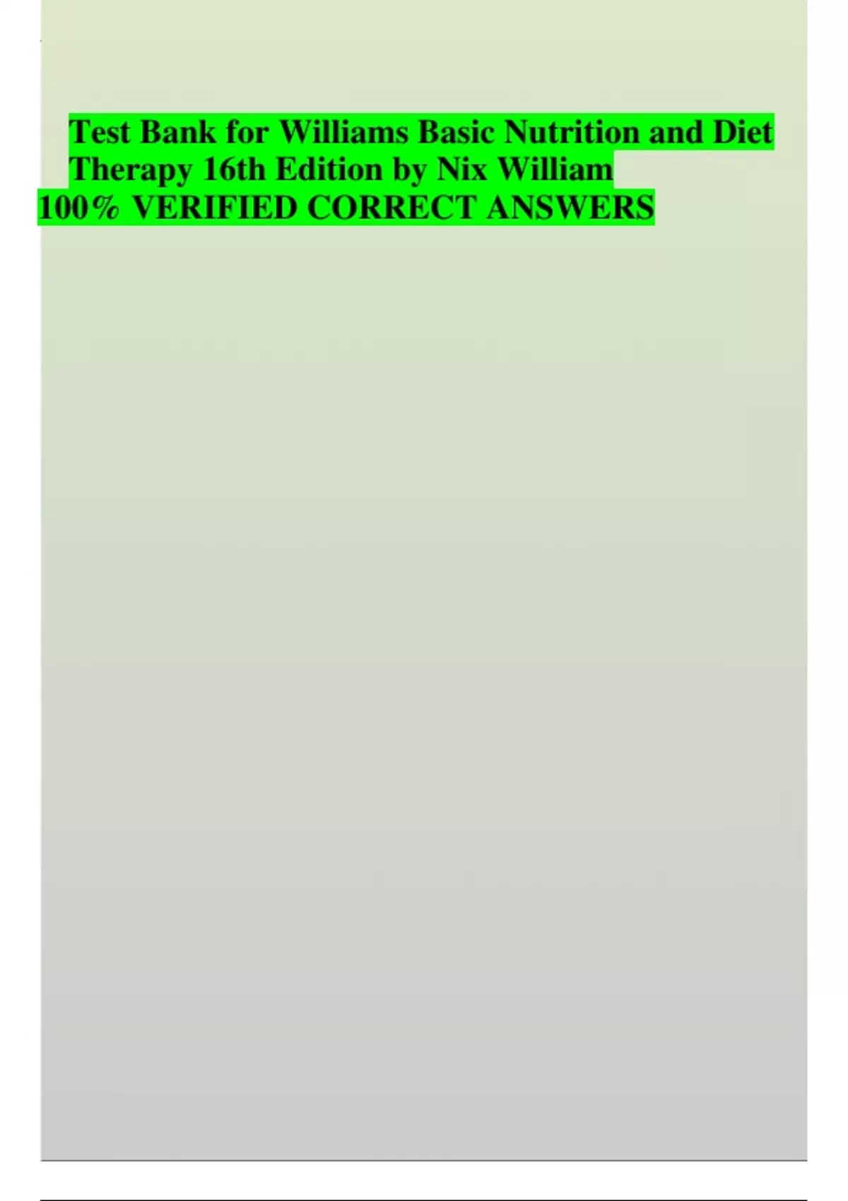 Test Bank for Williams Basic Nutrition and Diet Therapy 16th Edition by Nix William 100% VERIFIED CORRECT ANSWERS