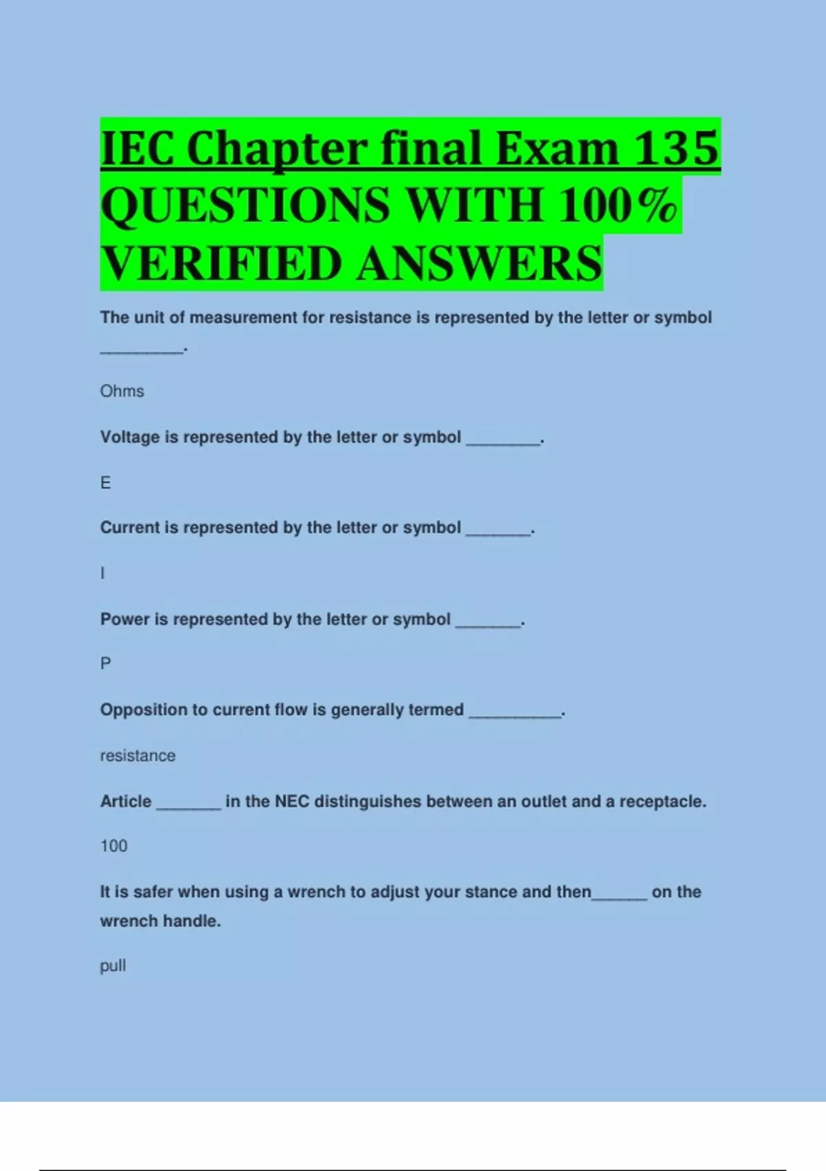 iec chapter final exam 135 questions with 100 ve