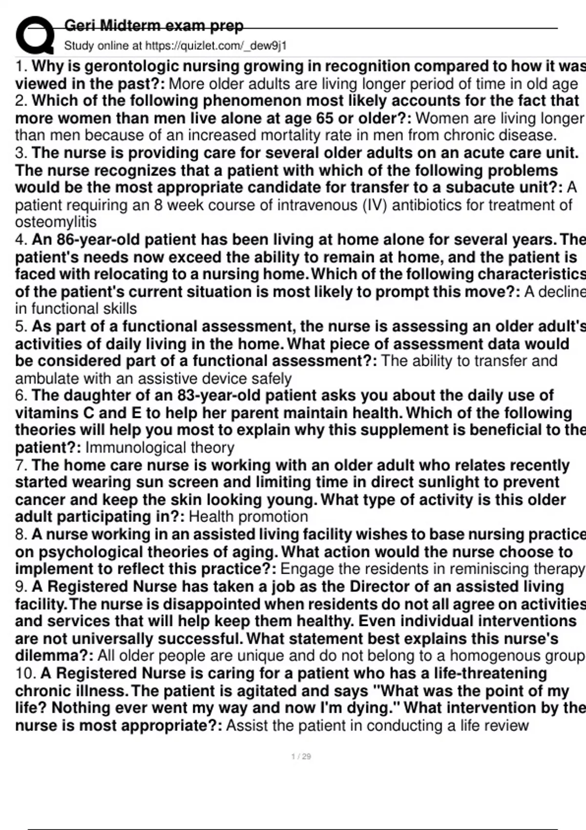 Geri Midterm exam prep