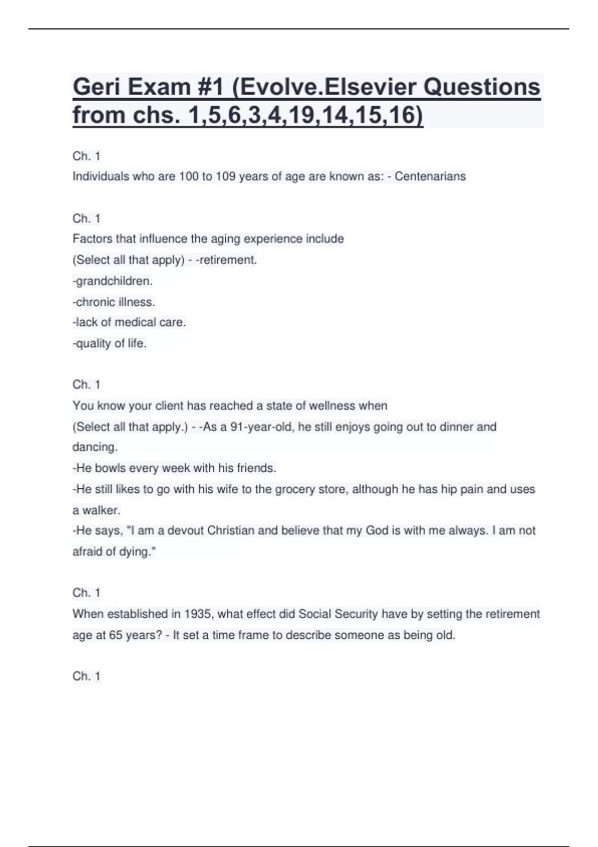 Geri Exam #1 (Evolve.Elsevier Questions from chs. 1,5,6,3,4,19,14,15,16).pdf