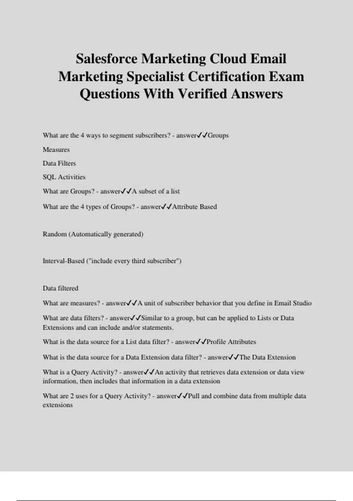 Salesforce Marketing Cloud Email Marketing Specialist Certification Exam Questions With Verified Answers