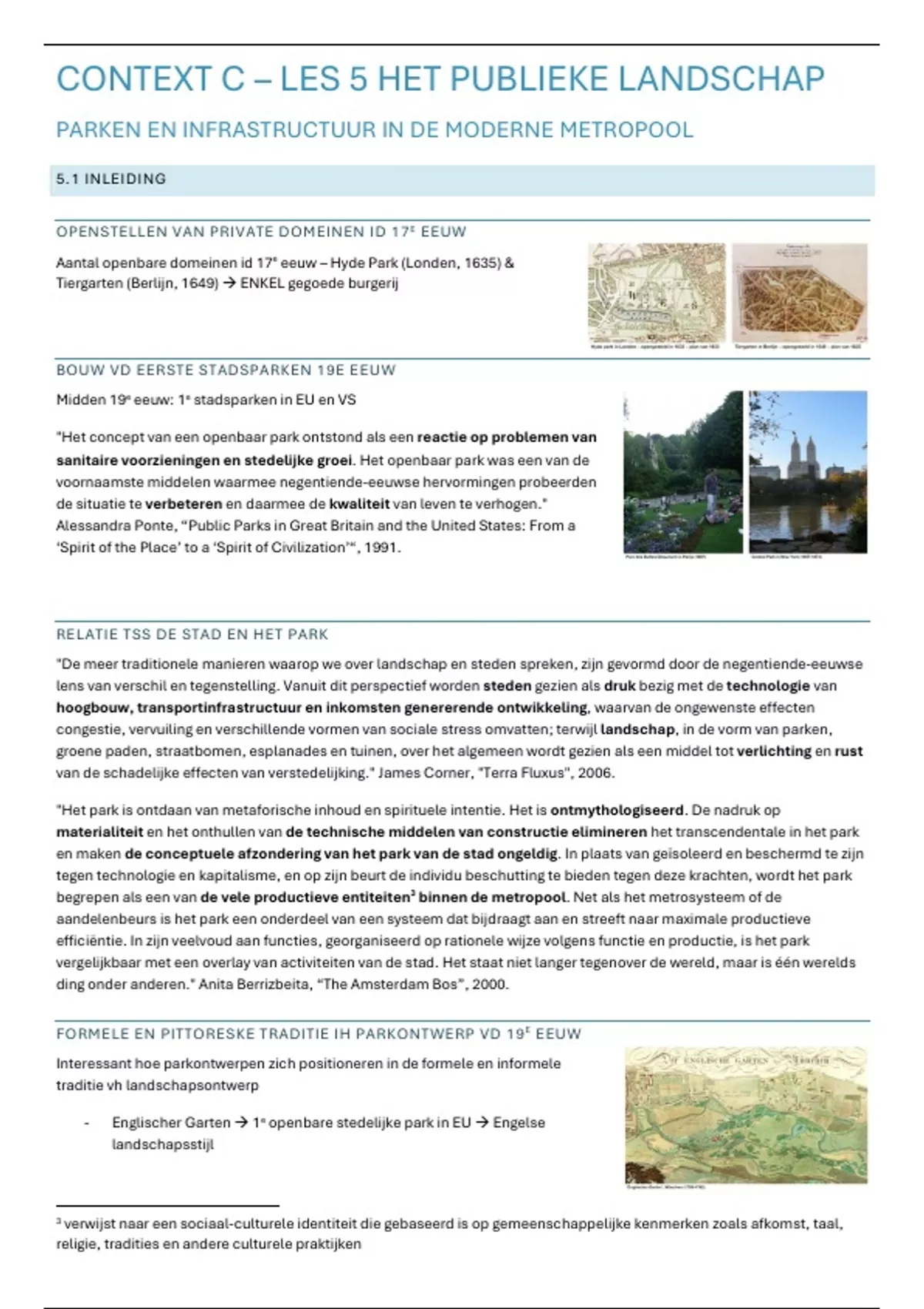 Les 5 publieke landschap 19e eeuw_context C samenvatting/lesnotities