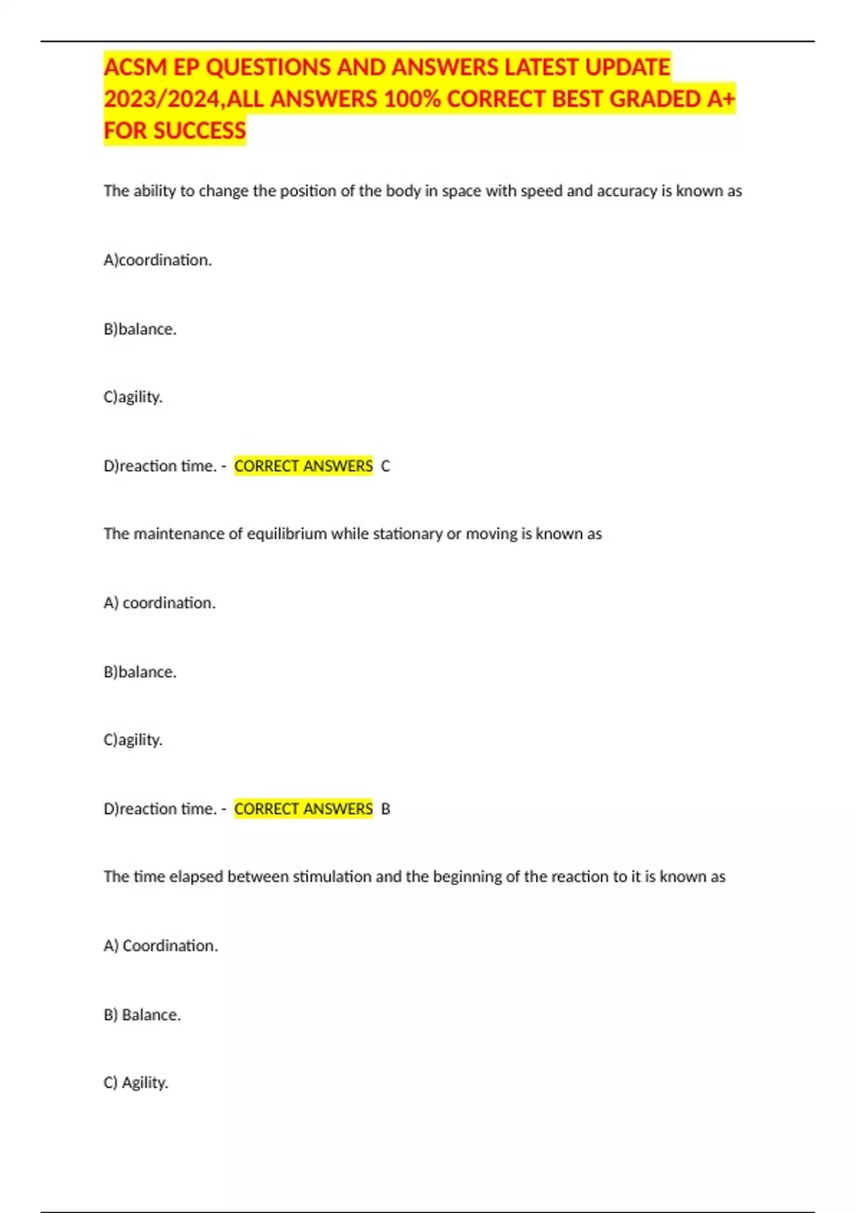 ACSM EP QUESTIONS AND ANSWERS LATEST UPDATE 2023/2024,ALL ANSWERS 100% CORRECT BEST GRADED A+ FOR SUCCESS