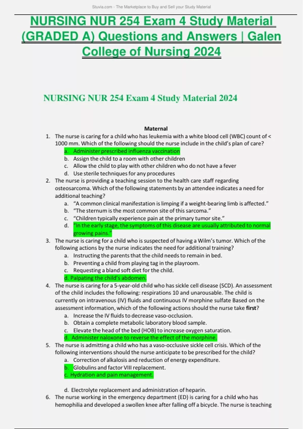 NURSING NUR 254 Exam 4 Study Material (GRADED A) Questions and Answers | Galen College of Nursing 2024