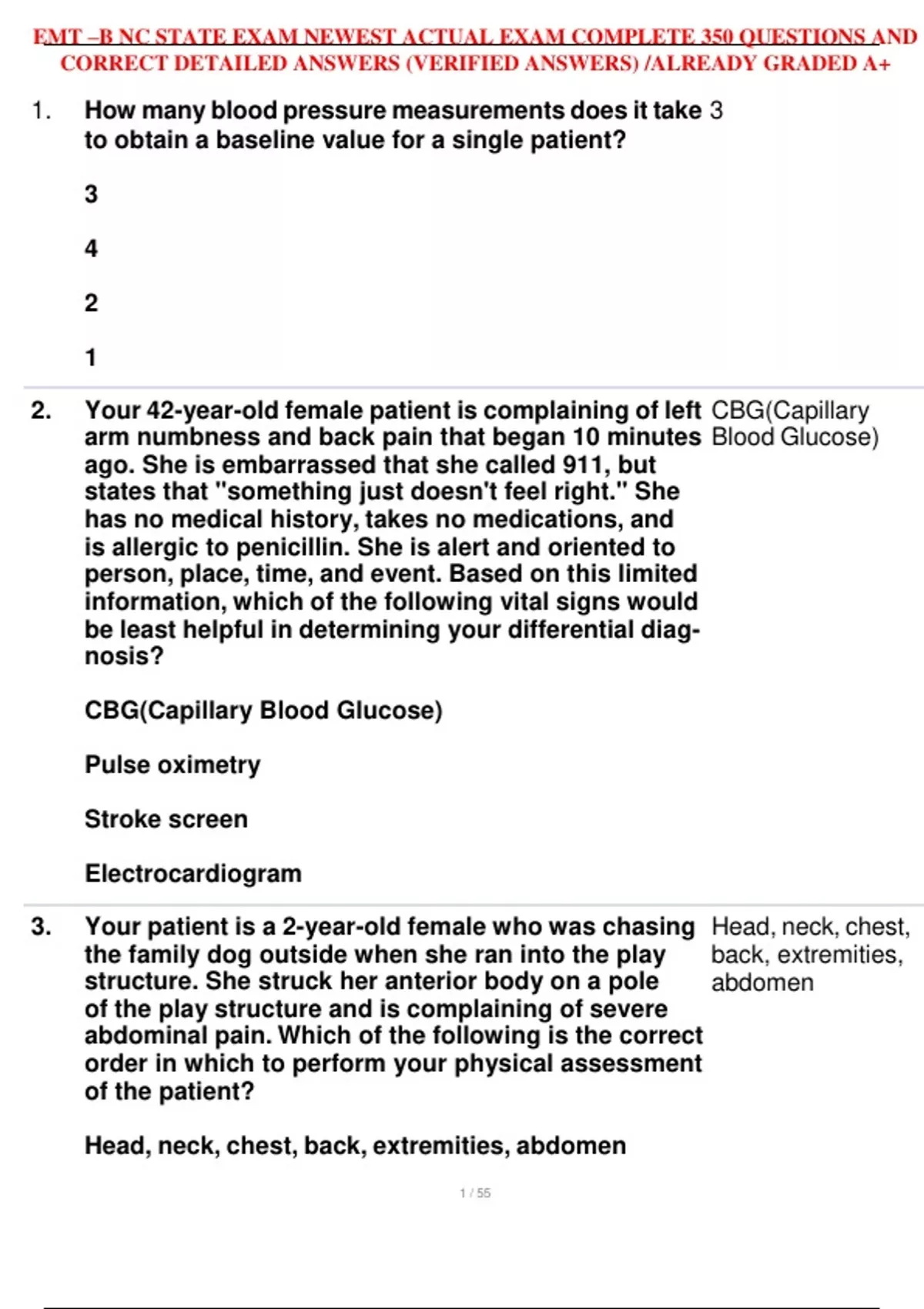 emt b nc state exam newest actual exam complete 3