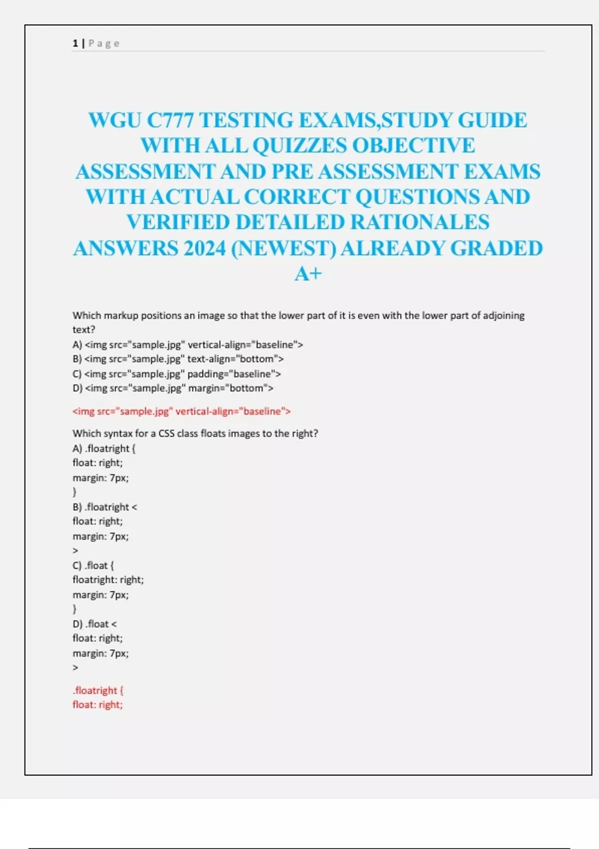 WGU C777 TESTING EXAMS,STUDY GUIDE WITH ALL QUIZZES OBJECTIVE ASSESSMENT AND PRE ASSESSMENT EXAMS WITH ACTUAL CORRECT QUESTIONS AND VERIFIED DETAILED RATIONALES ANSWERS 2024 (NEWEST) ALREADY GRADED A+