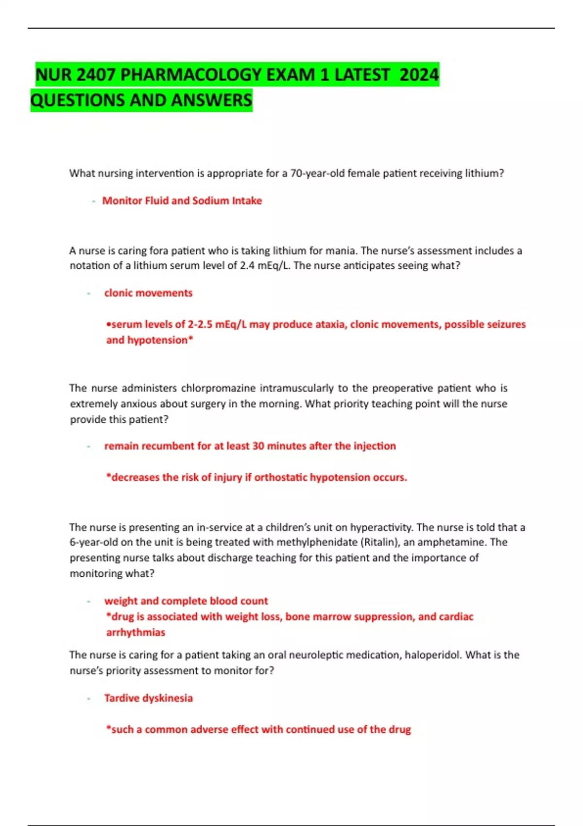 NUR2407 PHARMACOLOGY EXAM 1 LATEST 2024 QUESTIONS AND ANSWERS