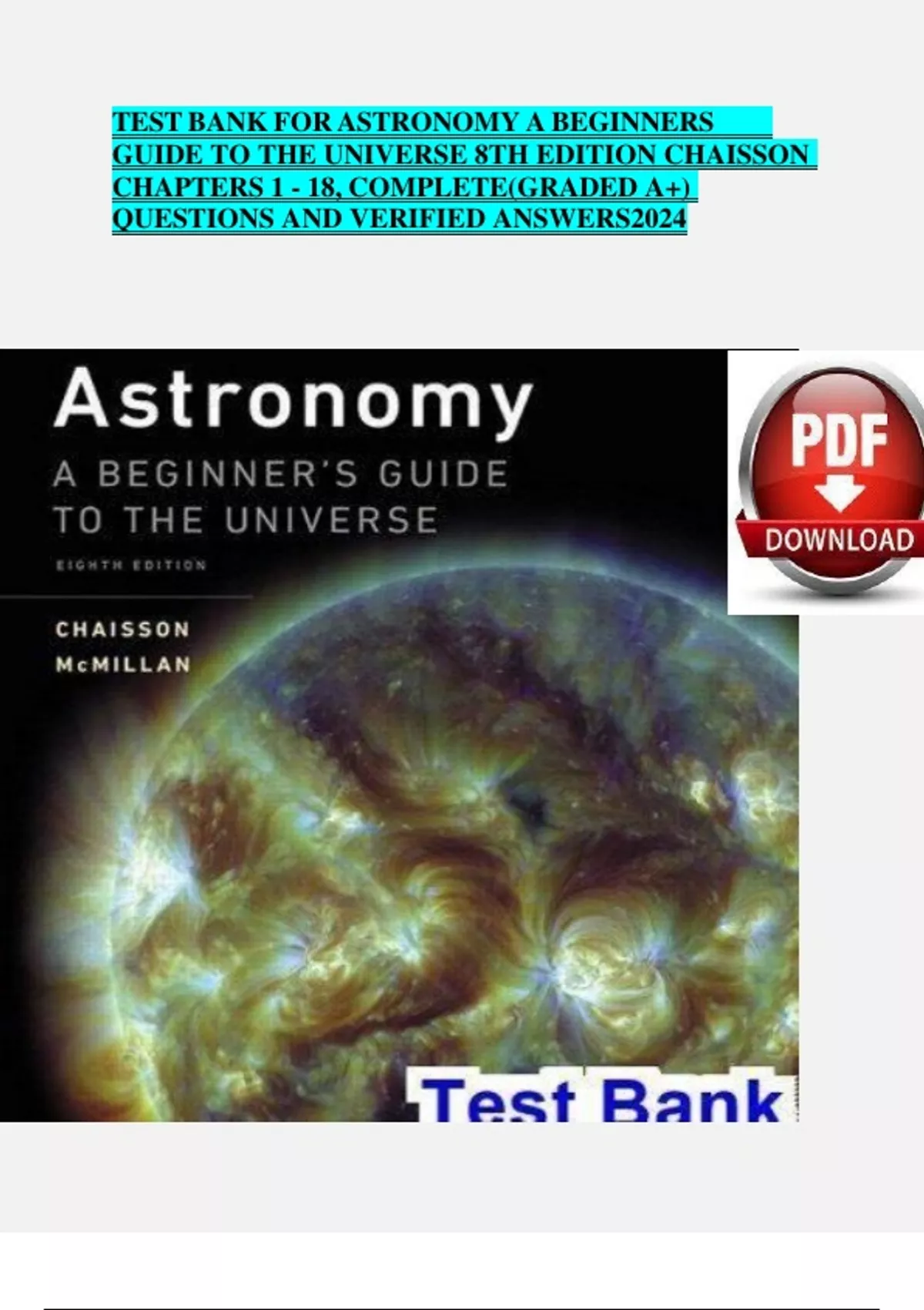 TEST BANK FOR ASTRONOMY A BEGINNERS GUIDE TO THE UNIVERSE 8TH EDITION CHAISSON CHAPTERS 1 - 18, COMPLETE(GRADED A+) QUESTIONS AND VERIFIED ANSWERS2024