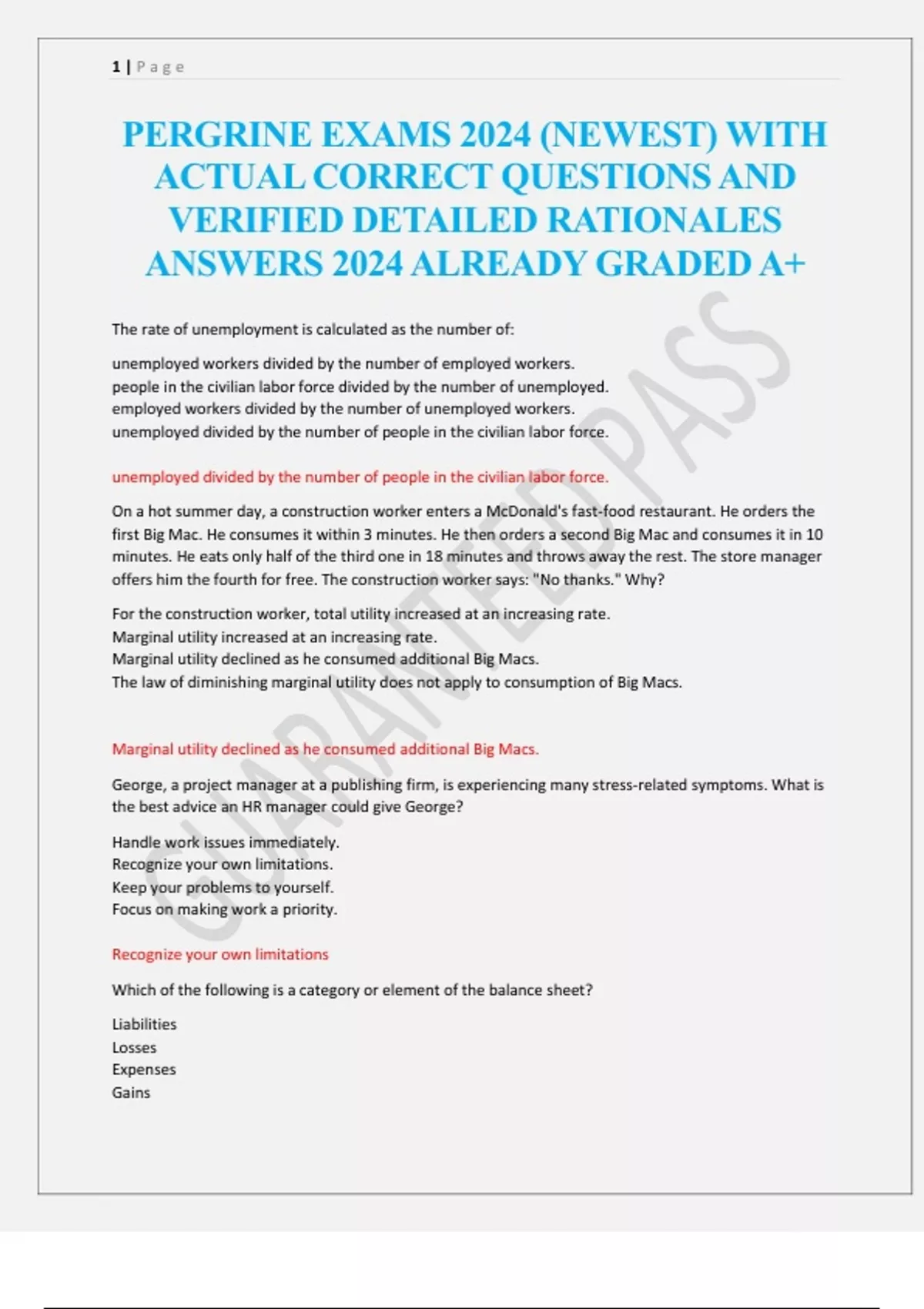 PERGRINE EXAMS 2024 (NEWEST) WITH ACTUAL CORRECT QUESTIONS AND VERIFIED DETAILED RATIONALES ANSWERS 2024 ALREADY GRADED A+