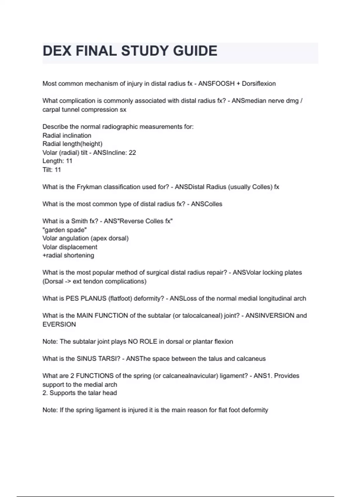DEX FINAL STUDY GUIDE questions and answers already graded A+ 2024/2025